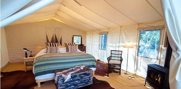 白色亮麗的居住帳篷,質地結實且經久耐用,簡潔的內部裝扮,開放式的布局,保持了視覺上的延續,舒適柔軟的睡床,呼吸著一層之隔的森林純氧,仿佛置身于世外桃源,將少而精的設計理念,運用的恰如其分。