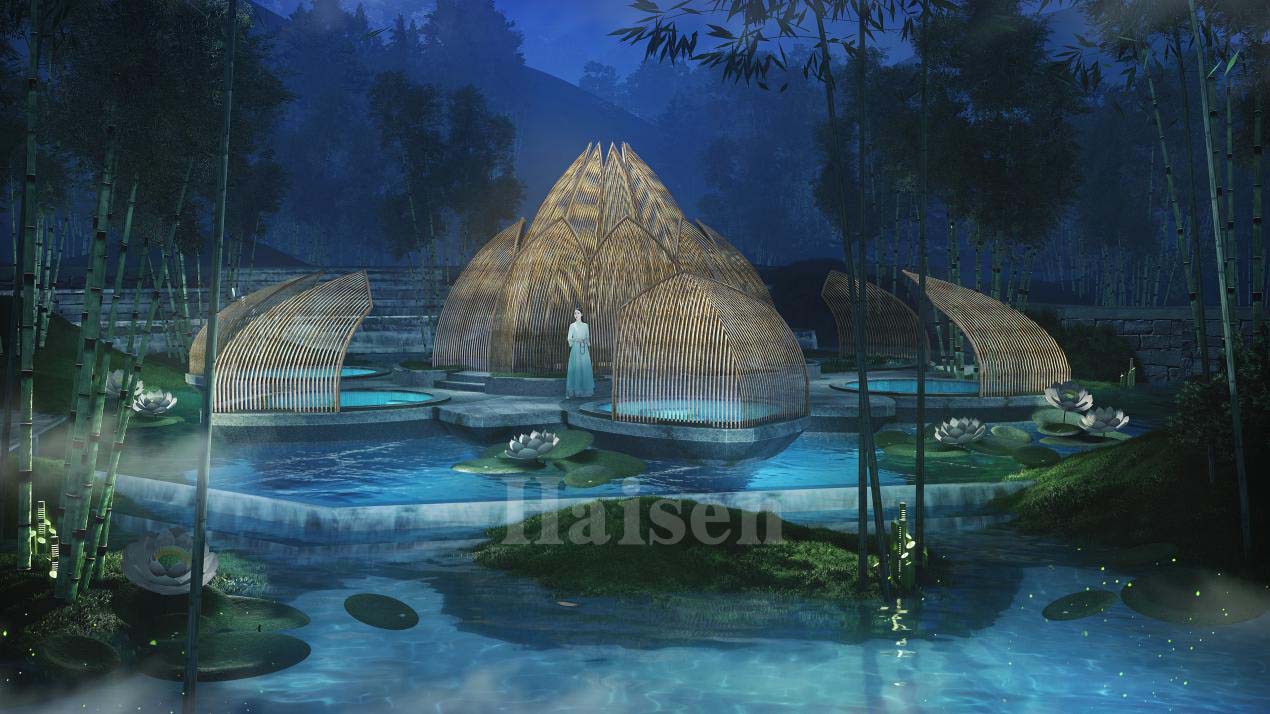 項目設計定位以森林生態為基,以禪文化為靈魂,以竹文化為主題,地域特色禪宗文化與竹文化,溫泉養生文化結合指導溫泉設計;由表及里,以形表意,竹空即禪空,竹心空空,禪心無塵,以泉入境,以竹入禪,空竹映禪心,塑造人與內心,人與自然對話空間, 體驗一場素心悟禪的歷經;最終以“空竹禪心”為主題,以溫泉康養、生態休閑、理療康復、文化體驗等為功能,打造現代溫泉康養生活方式,形成主題式、復合式的精品度假禪泉養生谷。