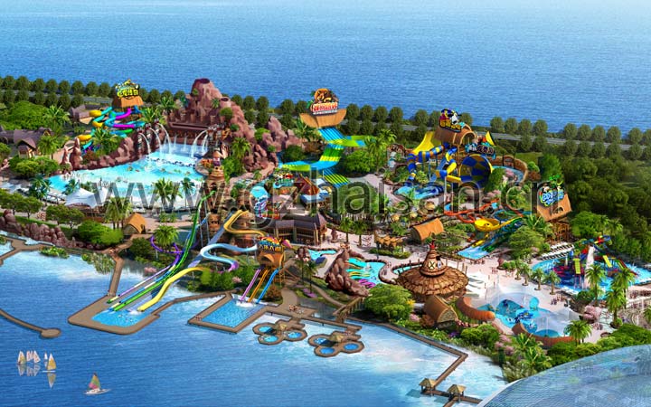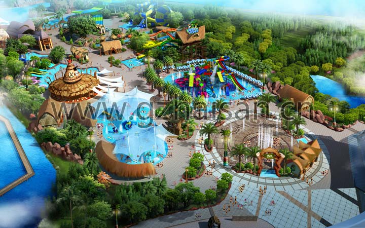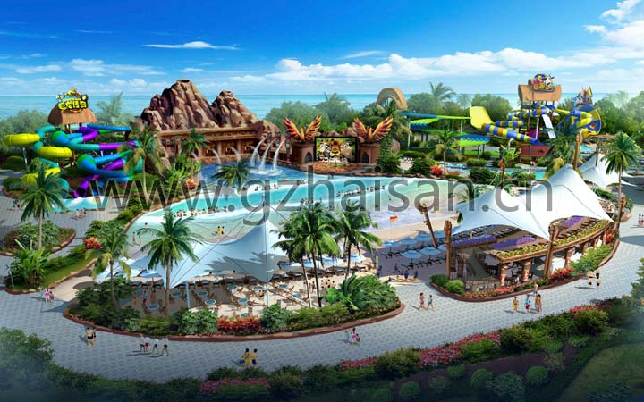 蘇州灣水上世界位于蘇州太湖夢幻世界,由亨通集團投資建設,海森文旅科技集團子公司海山游樂提供策劃、概規、詳規、景觀設計及部分設備制造安裝服務。 水上樂園設計以企鵝的馬達加斯加探險之旅為主題,在設計上注重攝取雨林地理風貌、人文風情、建筑藝術、生態景觀等鮮明的主題元素,建筑設計充分吸收雨林文化和海洋文化的元素,讓游客恍若置身于激烈的非洲熱帶雨林度假氛圍中,使情景體驗與度假休閑有機結合與有效實現,營造熱帶風情水上休閑世界。